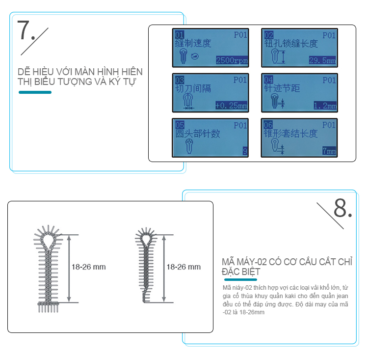 | Sewing Length | Round Head Eyehole: 8 - 43mm Straight Button Hole: 5 - 42mm |