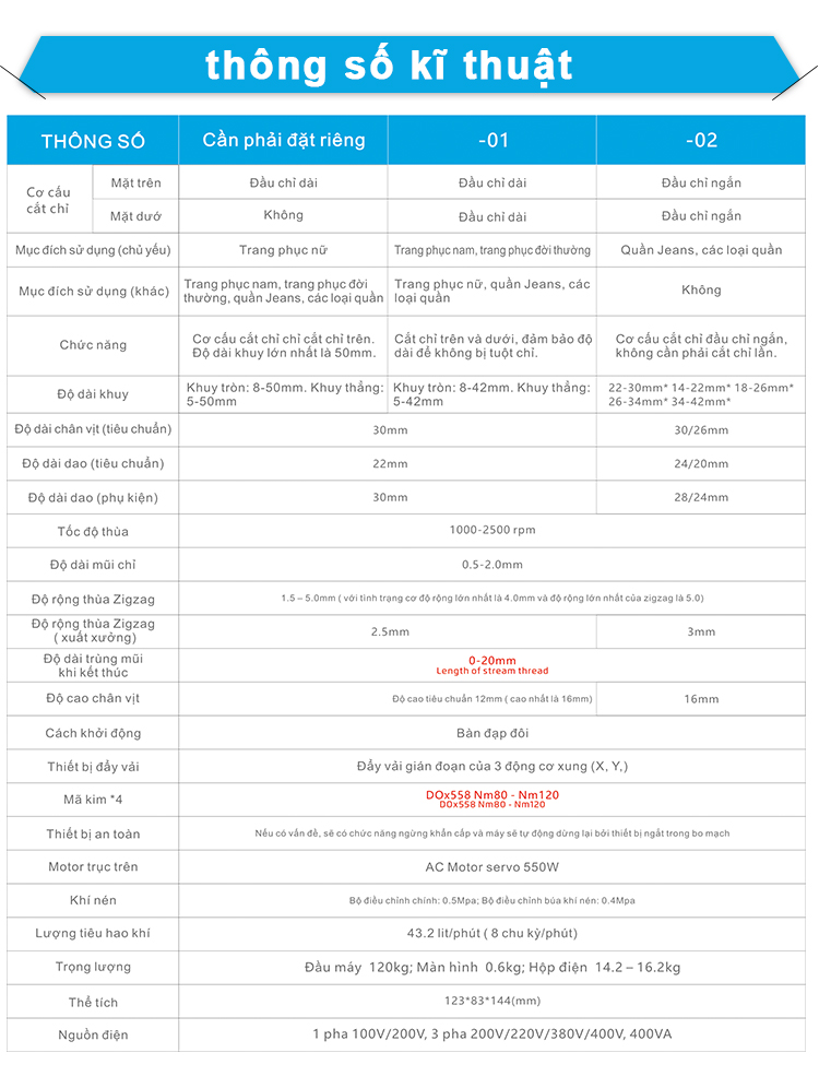 | Weight | Machine Head: ~120kg Operation Board: ~0.6kg Control Box: 14.2 - 16.2kg |