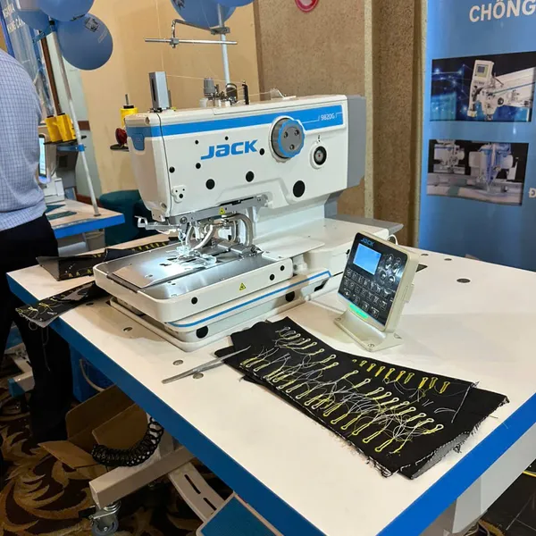 Với tốc độ may cao (thường đạt 2500 vòng/phút hoặc cao hơn tùy cấu hình), máy JACK JK-9820-01 giúp rút ngắn đáng kể thời gian hoàn thành công đoạn làm khuy, trực tiếp gia tăng năng suất sản xuất cho doanh nghiệp.