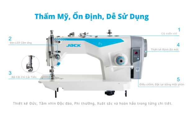 JACK F5-HL-7 là phiên bản nâng cấp chuyên biệt của dòng máy 1 kim liền trục F5, được thiết kế để đáp ứng nhu cầu sản xuất các loại vật liệu nặng (Heavy-Weight) như da, denim, bạt, và các sản phẩm nhiều lớp. Điểm nhấn là sự kết hợp giữa Motor Liền Trục Tiết Kiệm Điện và Ổ Lớn (Double/Large Capacity Hook), mang lại hiệu suất vượt trội và độ bền bỉ cao trong môi trường công nghiệp khắc nghiệt.