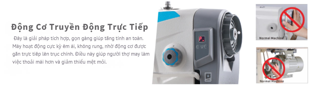 Tiết Kiệm Chi Phí Vận Hành: Motor liền trục giúp tiết kiệm điện và hệ thống Ổ Lớn giảm thời gian chết do thay suốt chỉ.