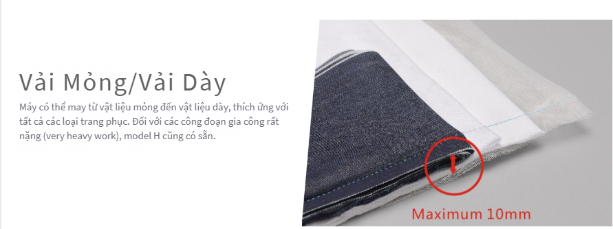 Đường May Chất Lượng Cao: Mũi kim xuyên thấu mạnh mẽ, tạo ra đường may đều, đẹp, hạn chế gãy kim và chỉ khi may trên vật liệu dày.