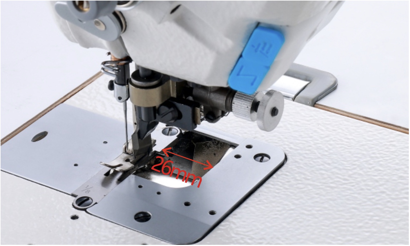 Chiều dài mũi may trên máy có thể được điều chỉnh với độ chính xác cực cao, tối thiểu là 0.1mm, nhờ sự kiểm soát hoàn toàn bằng động cơ bước (stepper motor). Tính năng này đảm bảo mật độ mũi may đồng nhất, lý tưởng cho các chi tiết may phức tạp. Ngoài ra, máy còn tích hợp chức năng khóa điều chỉnh để cố định chiều dài mũi may, giúp duy trì chất lượng ổn định trong suốt quá trình sản xuất.