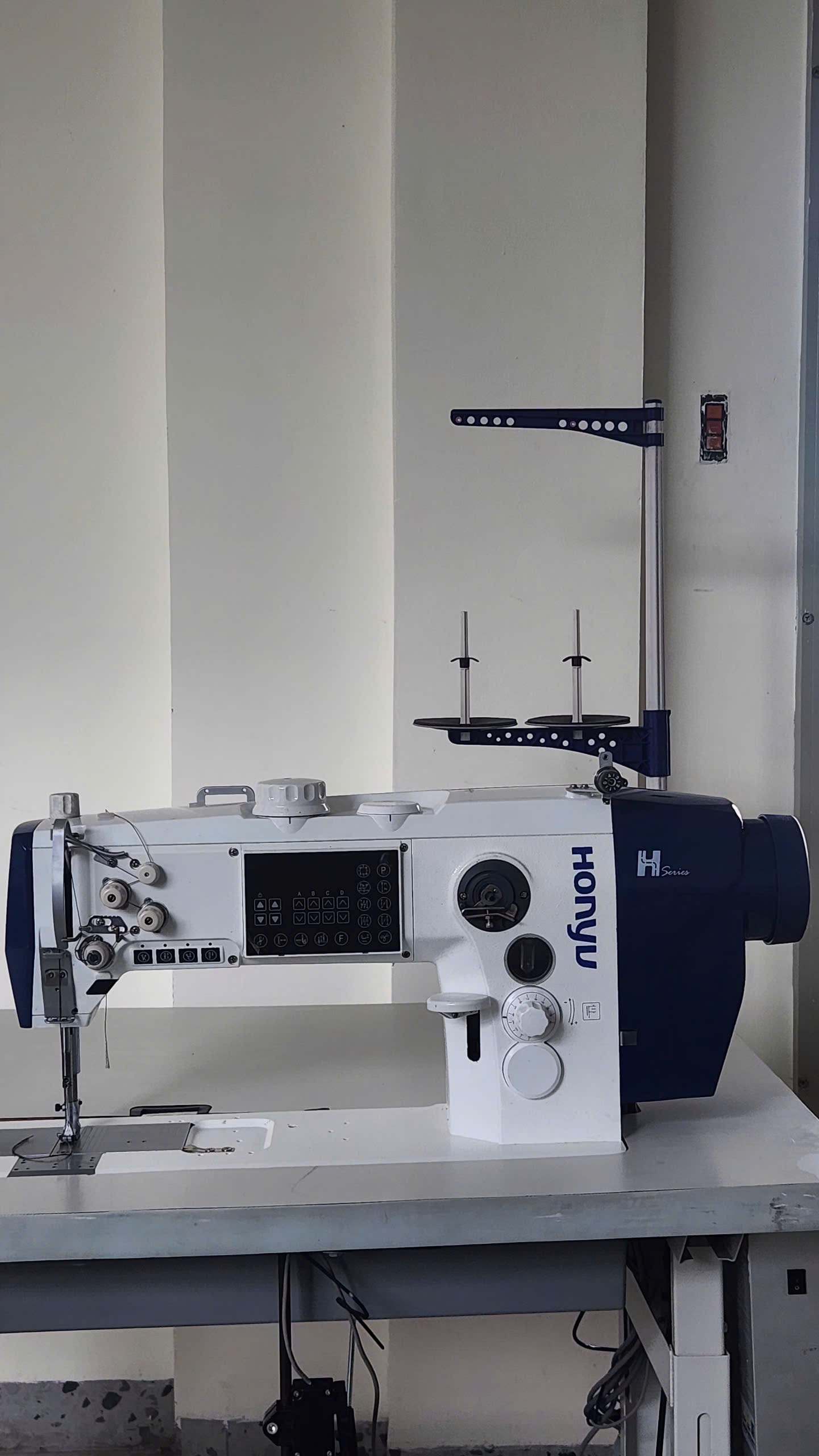 Bảng Điều Khiển Trực Quan: Tích hợp ngay trên thân máy, cho phép người vận hành dễ dàng cài đặt, điều chỉnh tốc độ, độ dài mũi may, và các chức năng tự động một cách nhanh chóng, chính xác.
