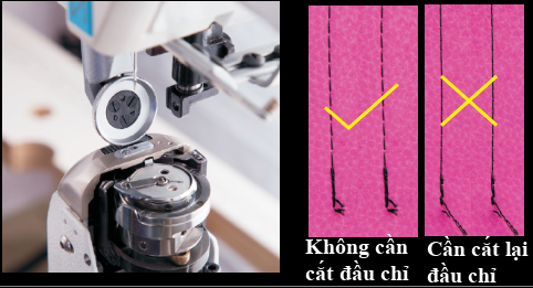 - Tùy chọn đầu chỉ ngắn: sử dụng cơ cấu cắt chỉ mới, kéo chỉ gần hơn với lỗ kim, sau khi cắt chỉ đầu chỉ ngắn khoảng 3mm, không cần cắt lại đầu chỉ, tiết kiệm thời gian, tiết kiệm chi phí nhân công.