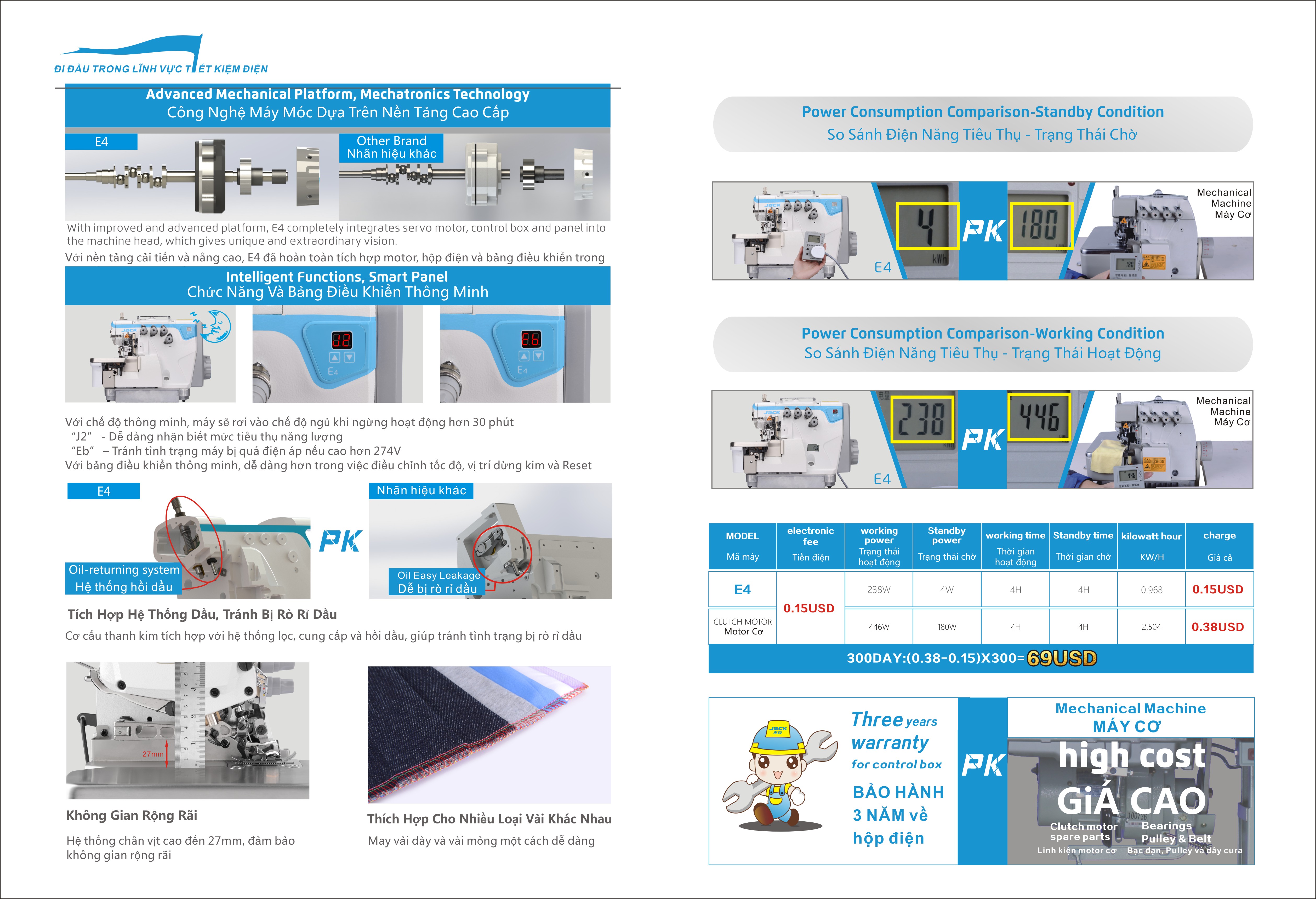 tiết kiệm điện năng , khogo dùng dây curoa, ko có tiếng ồn