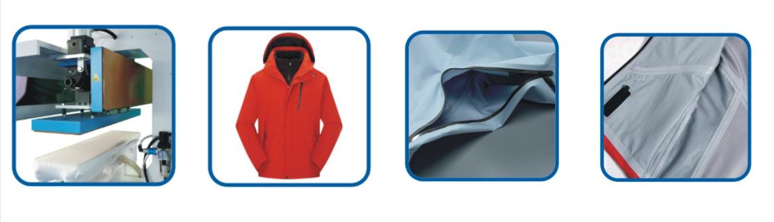 Đa Năng Vượt Trội: Xử lý các vật liệu ép dán phức tạp như vải chức năng, phim dán/băng keo chống nước (seam sealing tape), và keo dán liền mạch (seamless bonding).