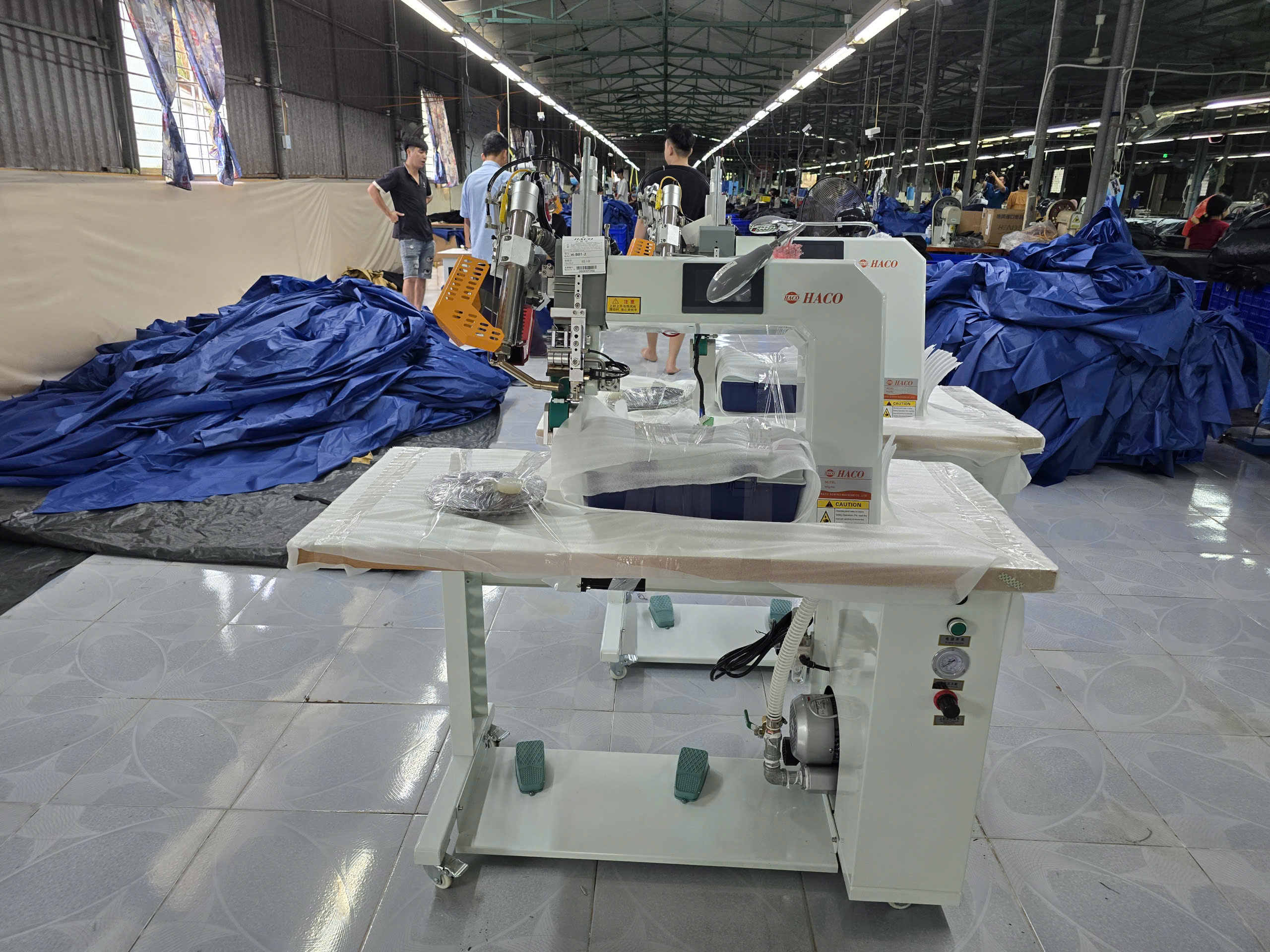 Máy HACO H-B01-2 là thiết bị cốt lõi dùng để dán băng keo (seam tape) lên các đường may, nhằm bịt kín lỗ kim và đạt khả năng chống thấm nước tuyệt đối.
