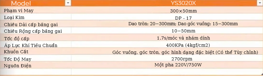 Phạm vi may 300×80 mm và khả năng cấp băng gai lên đến 300 mm giúp máy 3020X xử lý hiệu quả cả những miếng Băng Gai dài, loại móc (hook) hoặc nhám dính lớn.