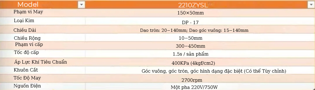 Tốc độ Vận hành Cao: Đạt tốc độ cấp liệu ấn tượng 1.8s/sản phẩm và tốc độ may 2700 rpm, giúp tăng cường năng suất sản xuất gấp bội.
