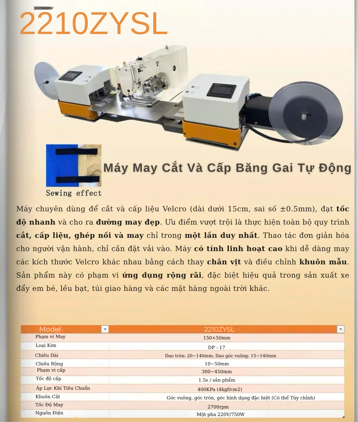 Đầu tư vào máy may nối Băng Gai tự động 2210ZYSL là đầu tư vào hiệu suất 2-trong-1, giúp bạn tiết kiệm thời gian, nhân công và đảm bảo chất lượng đường may tốt nhất.