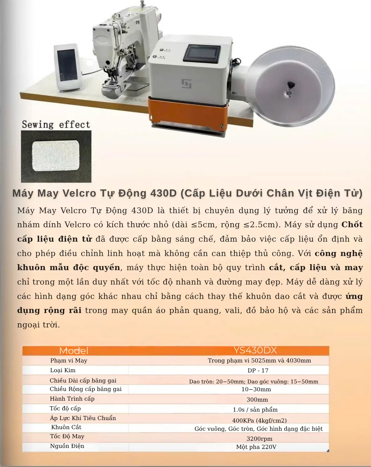 Ưu điểm nổi bật của máy may Velcro 430D nằm ở cơ chế tự động hóa thông minh:
