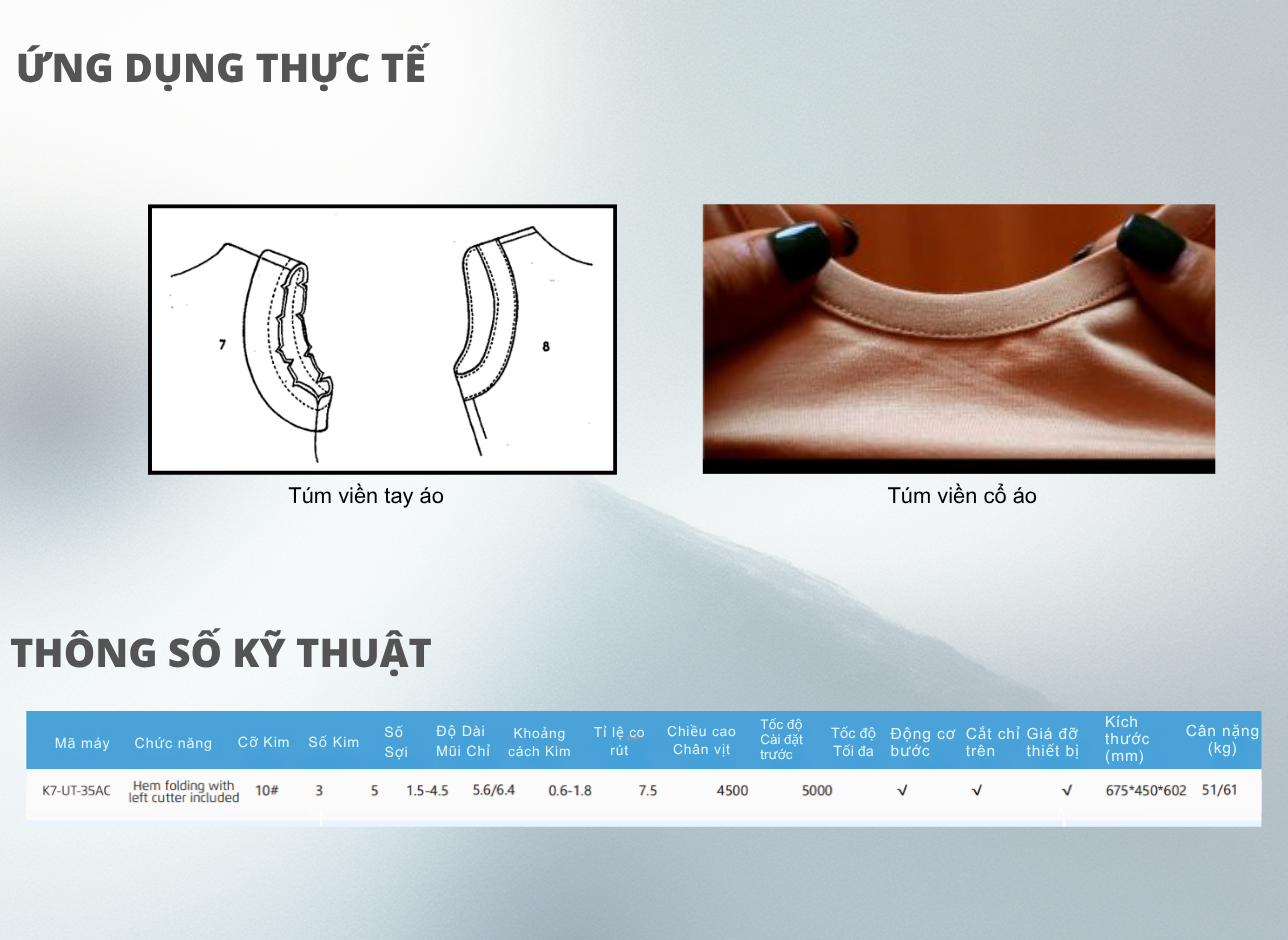 Sản phẩm Viền Nẹp: Ứng dụng linh hoạt trong việc may các đường nẹp thẳng và cong.