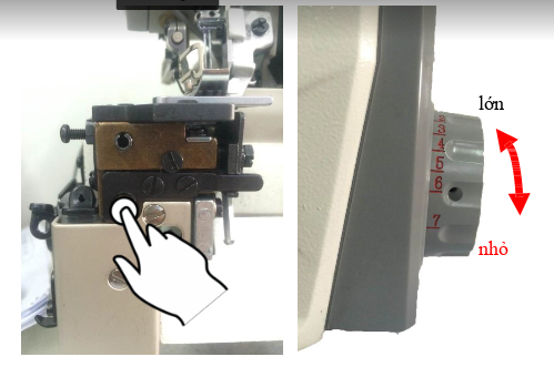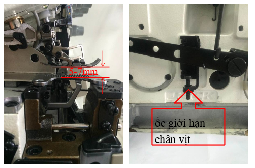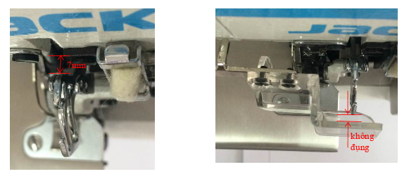 Phần cơ- chân vịt: Dựa theo độ dày mỏng của vải mà điều chỉnh độ cao thích hợp , phạm vi từ 5-7mm.