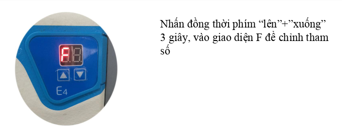 Sau khi vào giao diện F, nhấn phím “lên” để thay đổi tham số, sau đó nhấn phím “ xuống” để điều chỉnh màn hình hiển thị OK và trở về giao diện ban đầu.